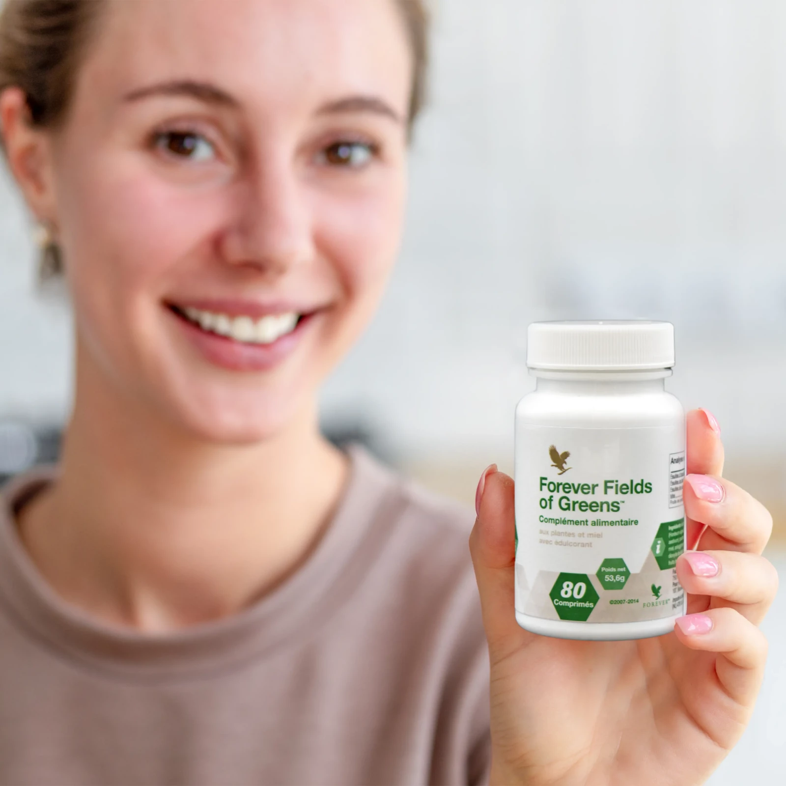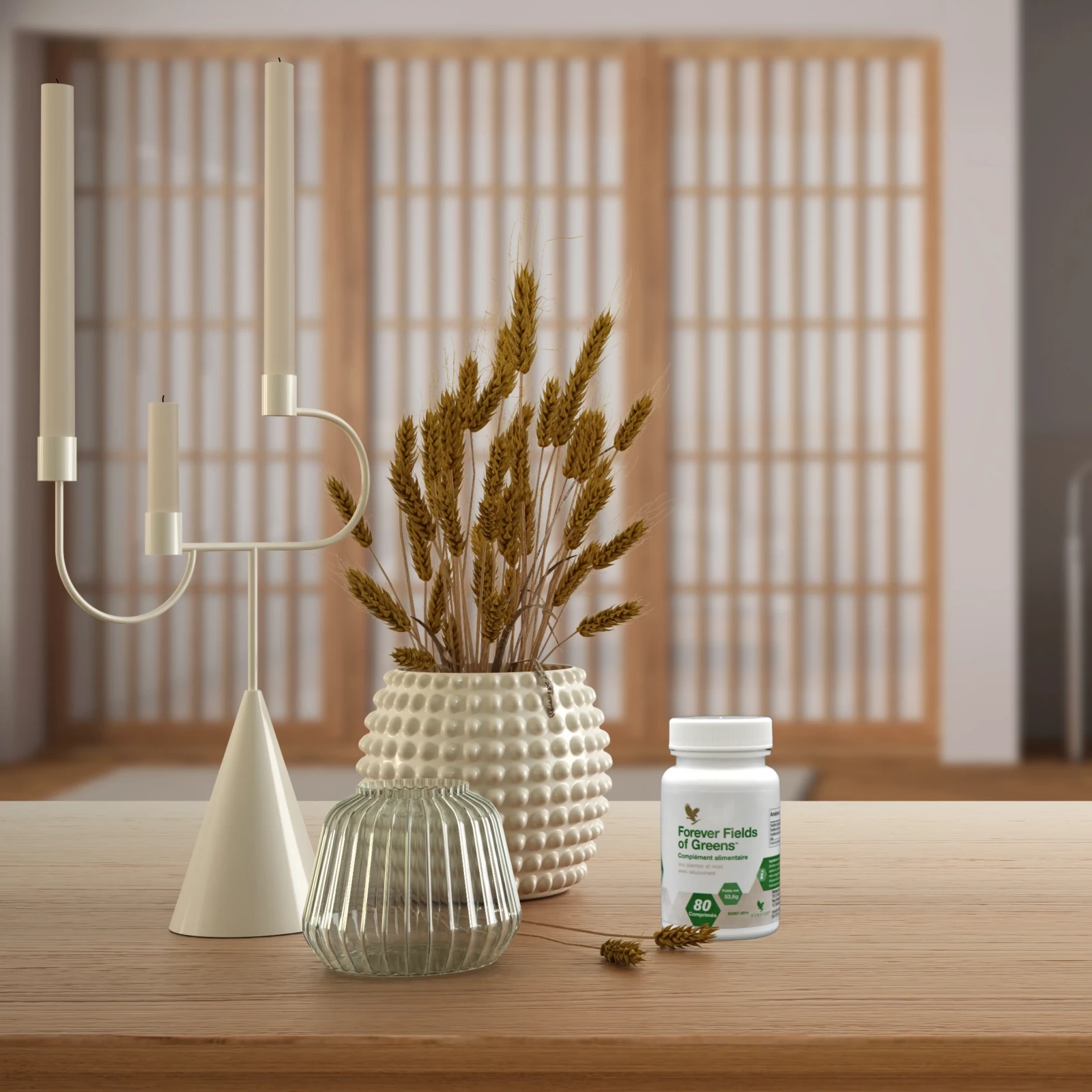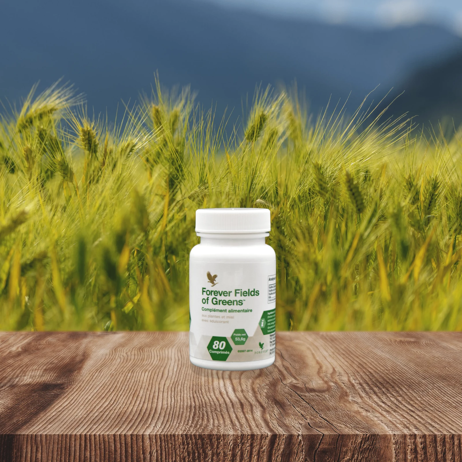 Fields of Greens™ is made from young plant shoots: barley leaves, wheat, alfalfa and cayenne peppers.